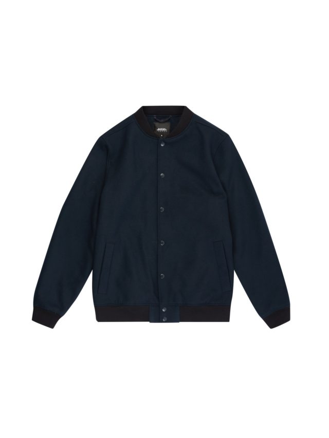 Navy Faux Wool Bomber Jacket